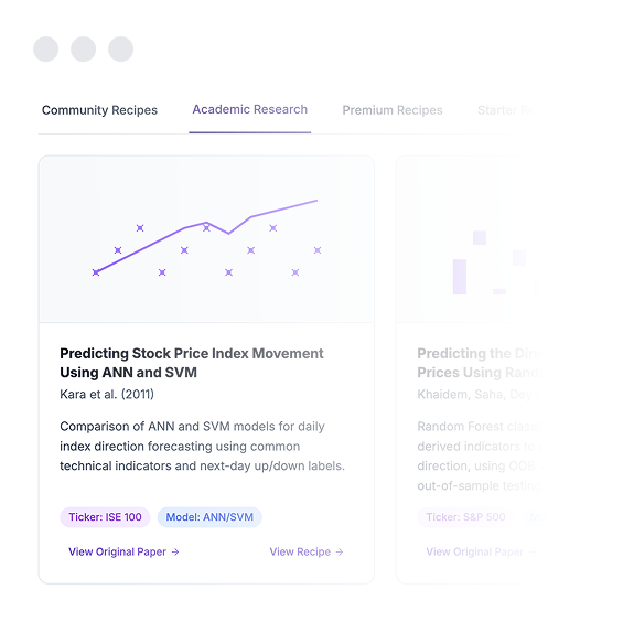 Browse community models and reproduced versions of popular academic papers. Learn how others approached the same problems and build on their work. Share your own models when you're ready.